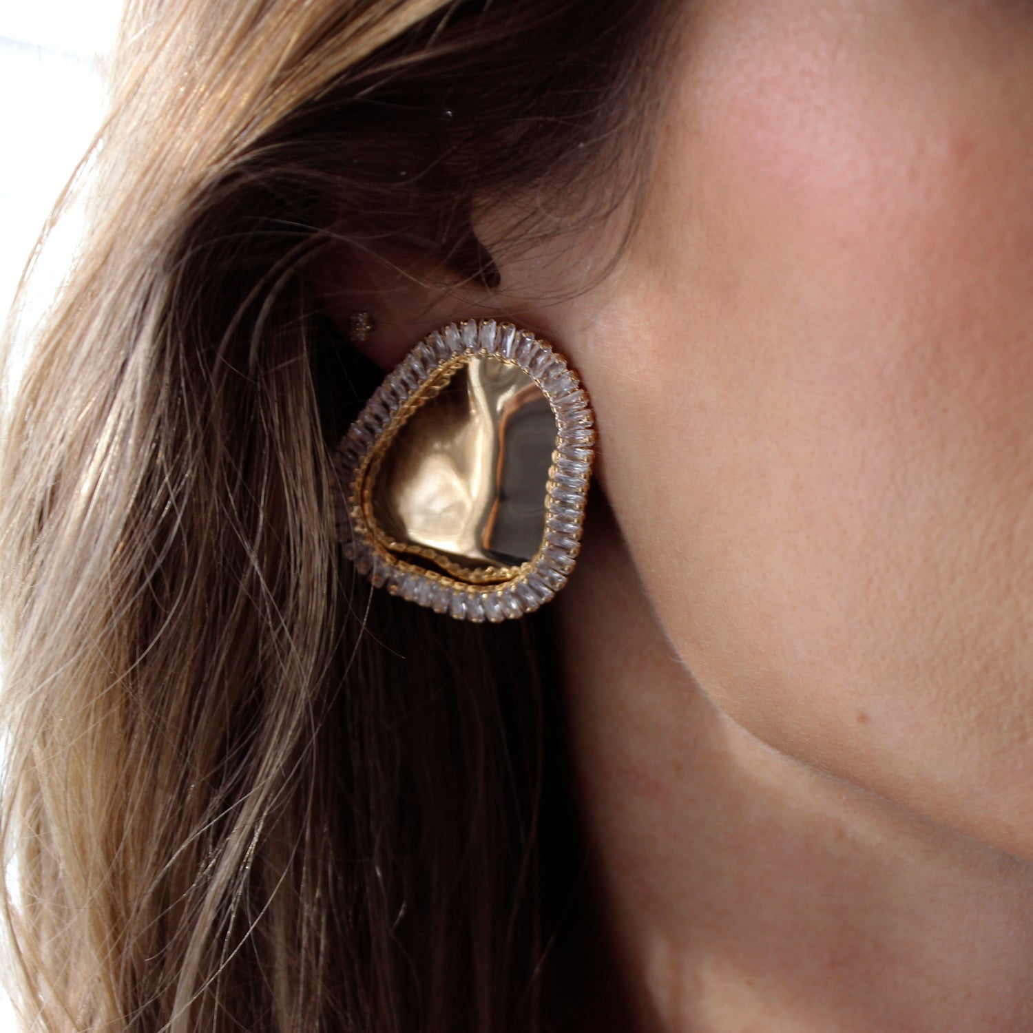 Individually placed baguette CZ stones, which means no two pairs are exactly the same. Some stones have slightly richer tones than others, creating a naturally varied edge that makes every Holly Earring pair one of a kind.
