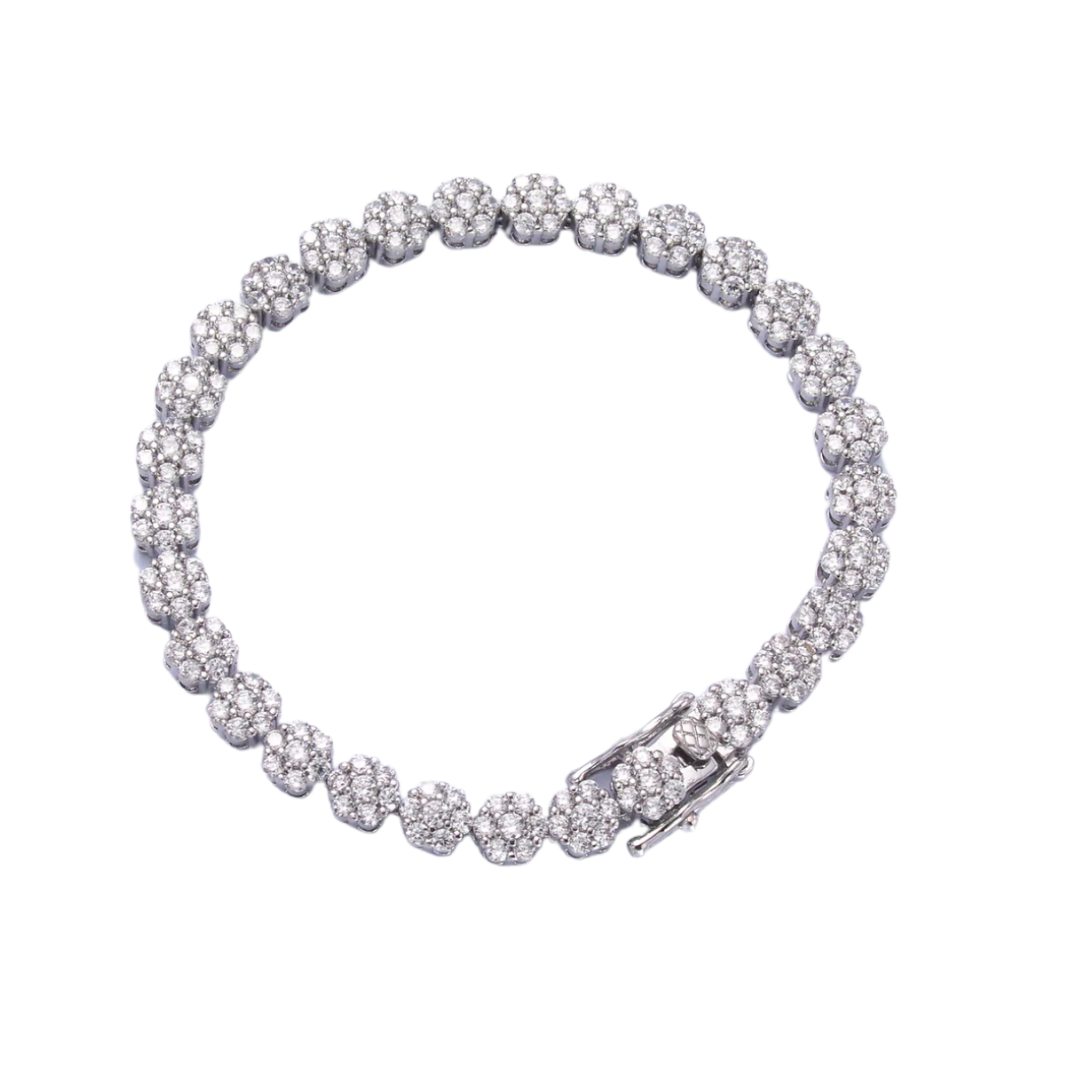 A standout twist on the classic tennis bracelet. This piece features micro-pavé CZ floral links set in 24K gold-filled for lasting shine. Feminine, bold, and built to stack—or steal the show solo.