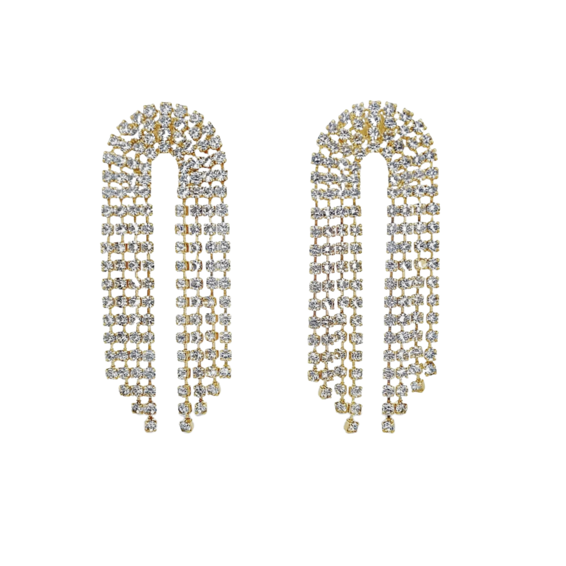 The Manhattan Drops are your go-to statement earrings for every holiday party, dinner out, or night when you want to feel a little extra. Dozens of CZ stones are set along a sleek U-shaped frame, creating a soft, dramatic drape that moves beautifully. Lightweight, modern, and designed to shine from across the room.