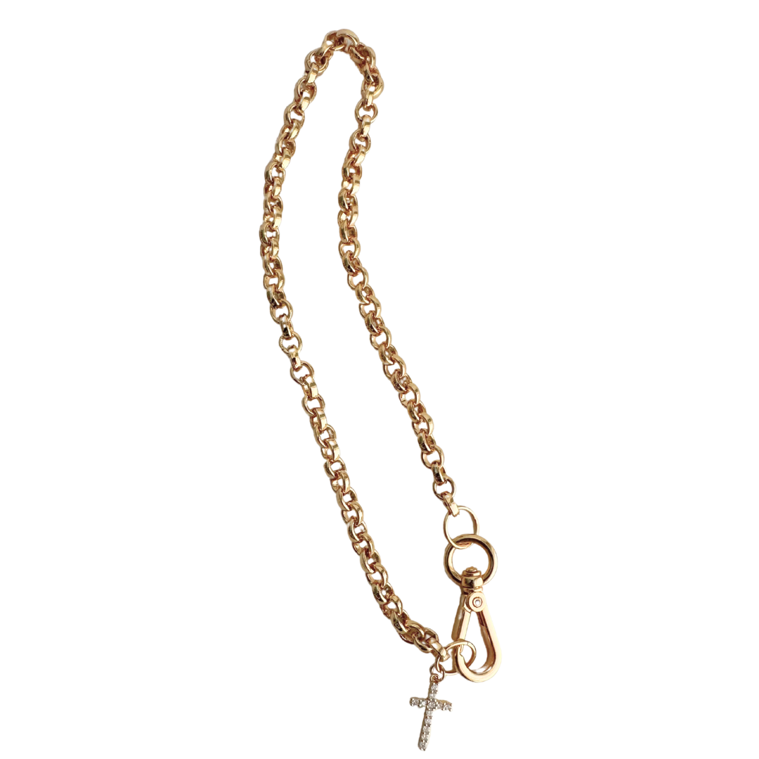 Rolo gold chain with lobster clasp and Cross charm.